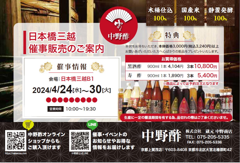 日本橋三越フードコレクション「GW帰省前のごちそう」出店のお知らせ | 中野酢