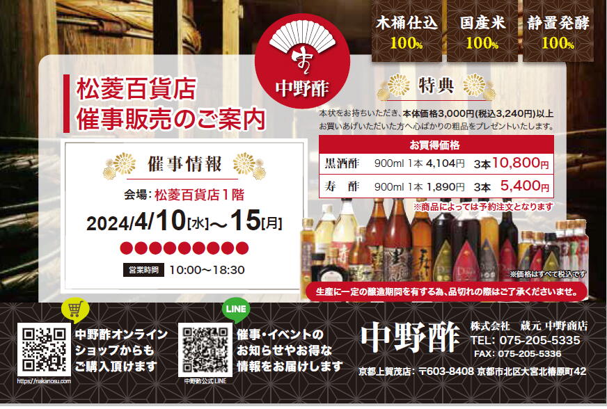 【出店情報】松菱百貨店 催事販売のお知らせ | 中野酢