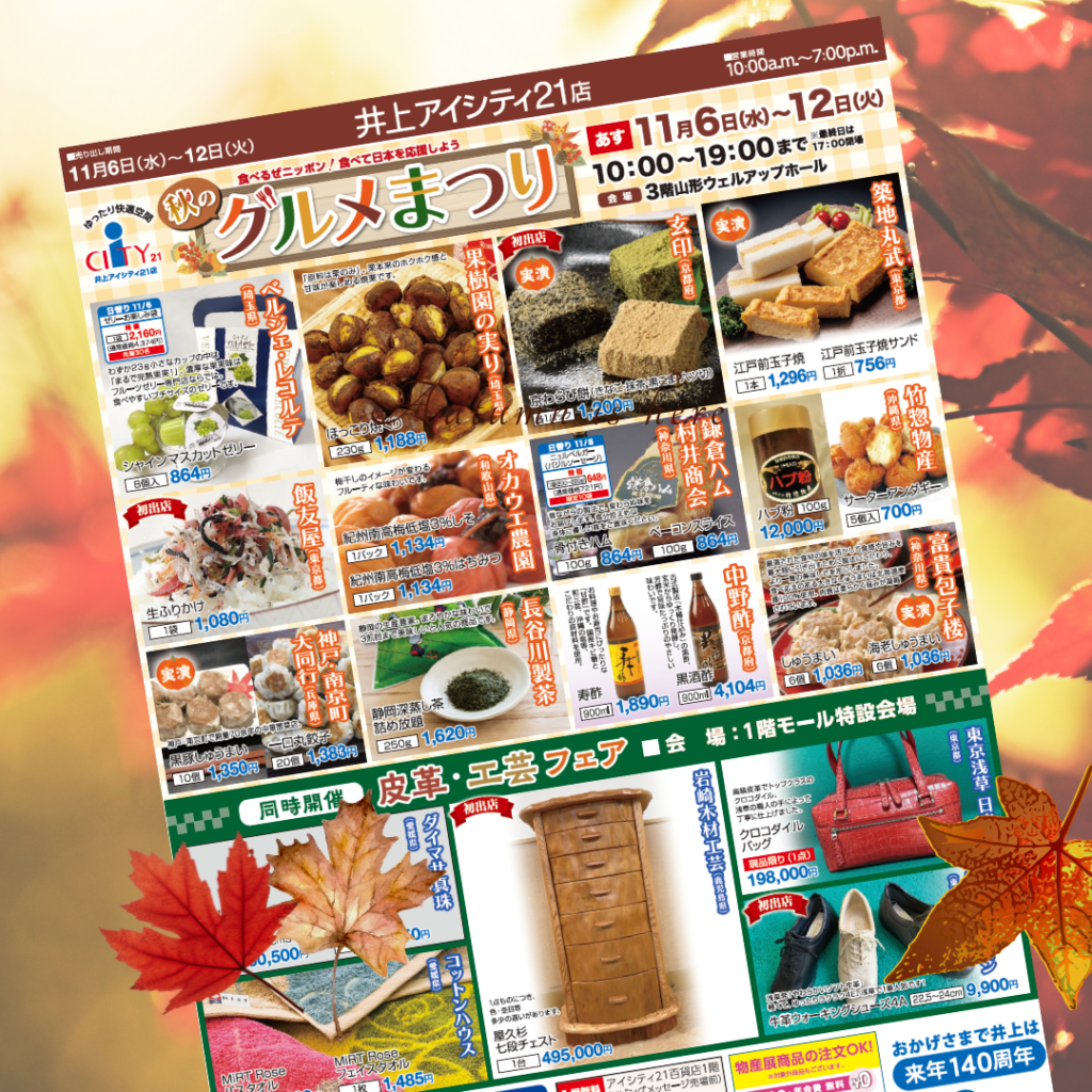 井上アイシティ21店「秋のグルメまつり」に出店させていただきます。