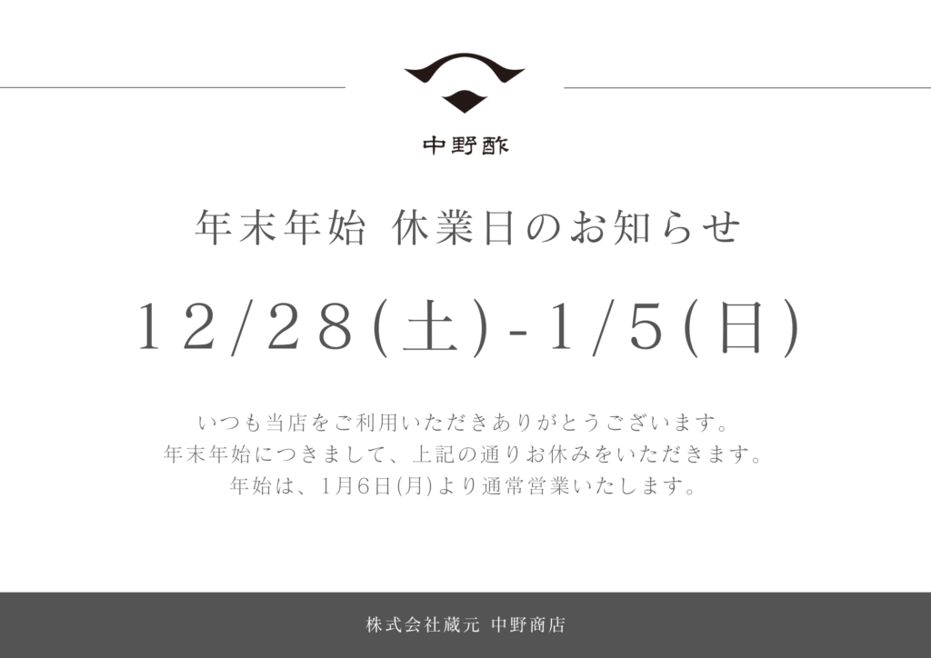 平素より、中野酢をご愛顧賜り、誠にありがとうございます。