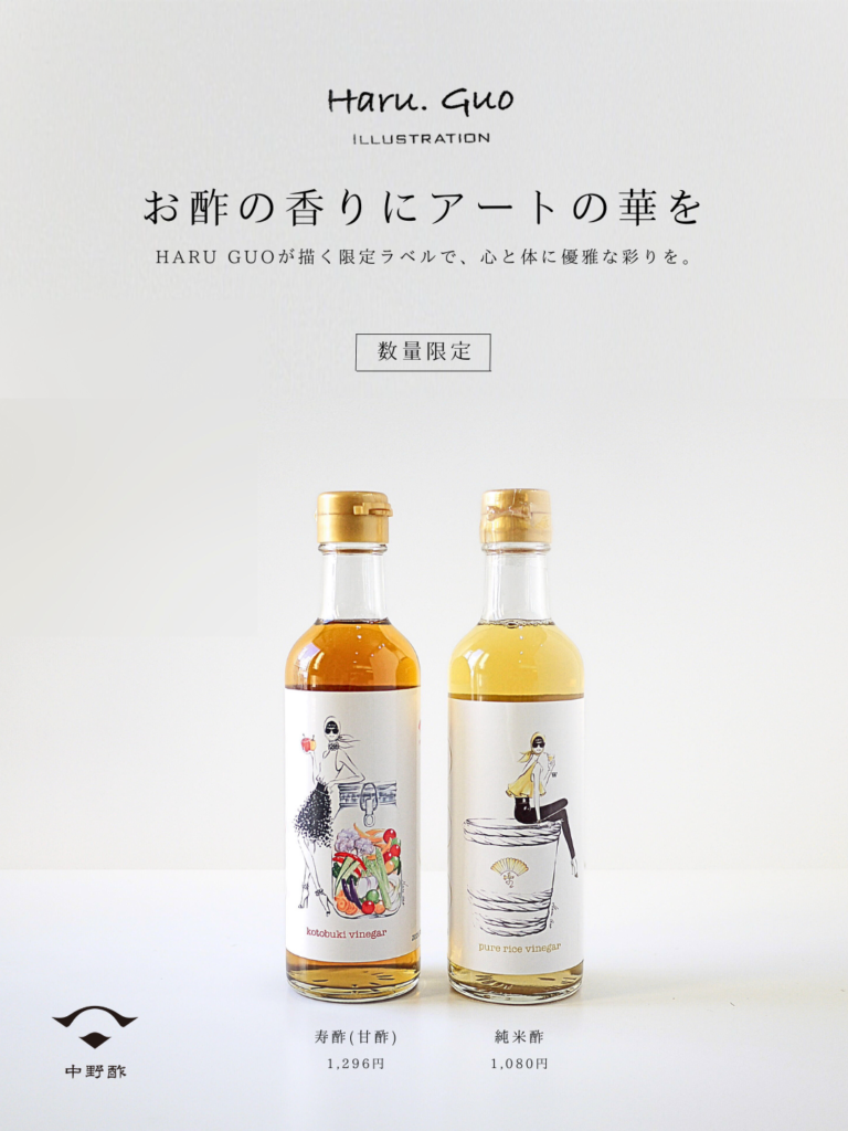 2025年2月5日より、デザイナー兼アーティストのHARU GUOさんが特別に手掛けたラベルデザインの数量限定「寿酢(甘酢)」を発売いたします。