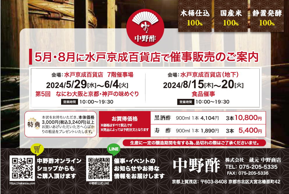 2024年8月15日(木)〜 8月20日(火)水戸京成百貨店にて催事販売をさせていただきます。