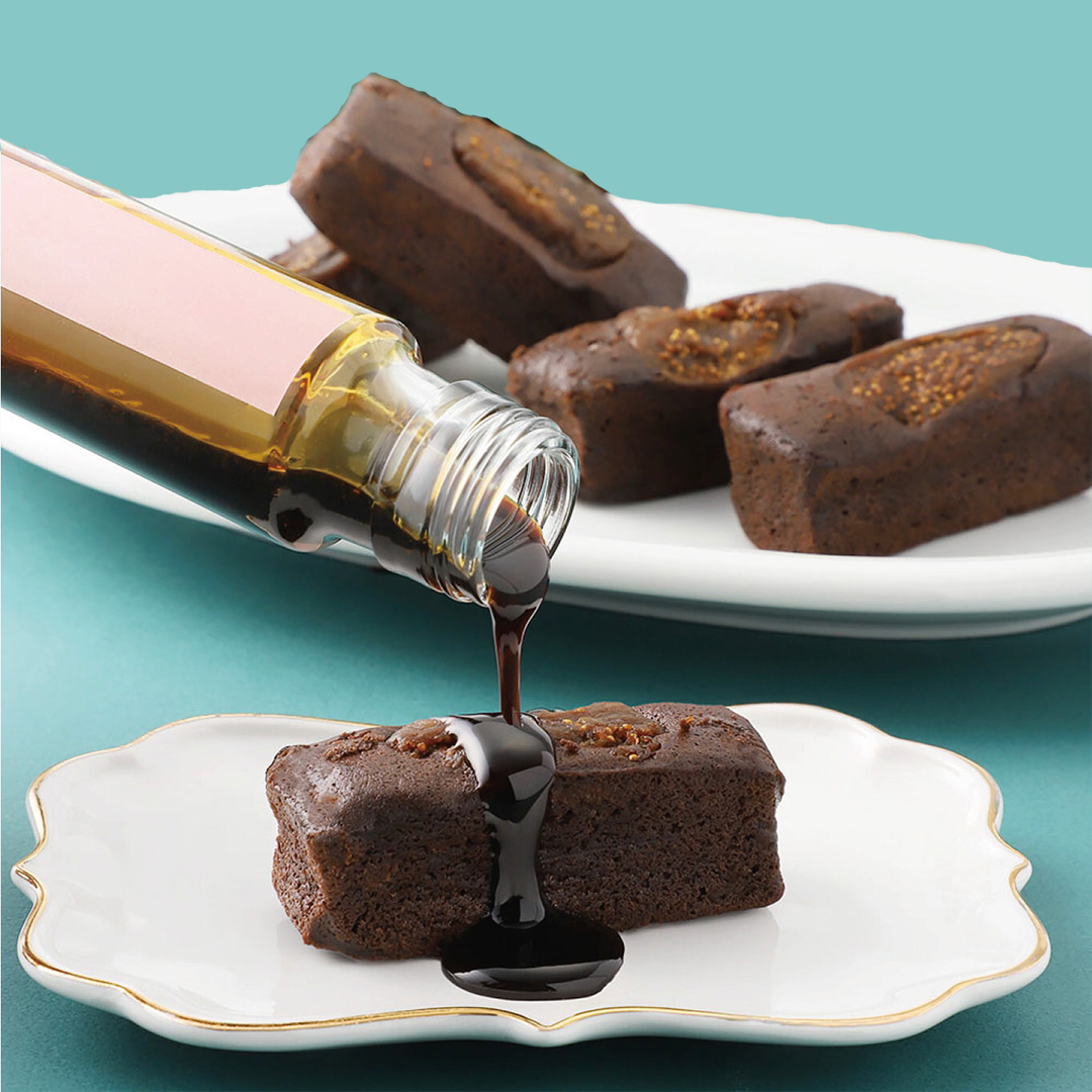 ガトーショコラと和製バルサミコ酢が調和し今までにない和と洋のマリアージュをお楽しみいただけます。