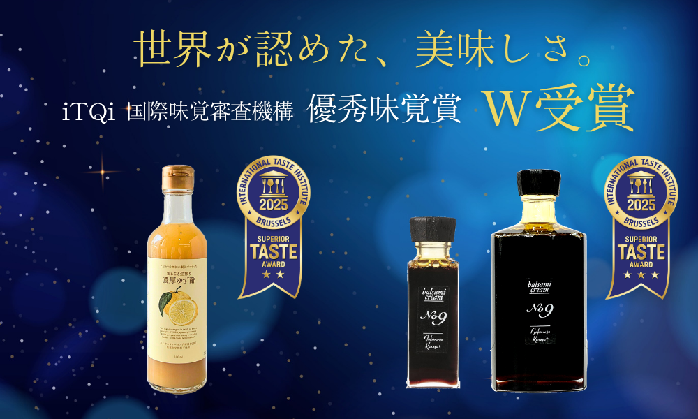 「バルサミクリームNo.9」および「まるごと生絞り濃厚ゆず酢」が iTQi(国際味覚審査機構)優秀味覚賞を受賞しました。